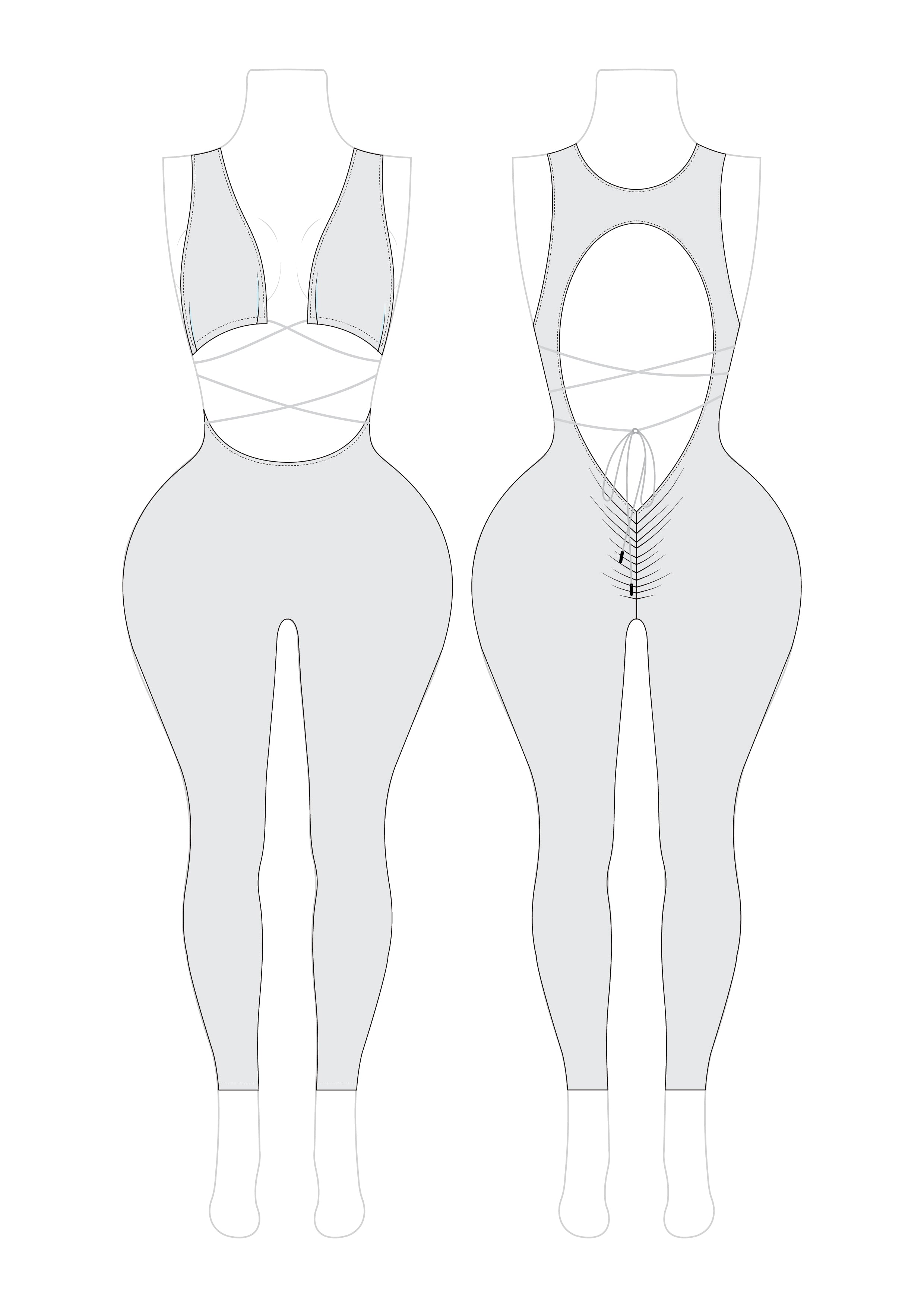 Make a fierce entrance with the Crisscross Bodysuit Pattern by Romspattern™. This bold full-length catsuit design features a deep scoop back, front cross-over straps, and a striking all-over leopard print. Designed for confident creators, this pattern is perfect for exotic performances, fashion showcases, or elevated streetwear with an edge.